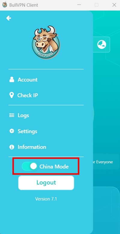 Our BullVPN Client version 7.1 for Windows has been updated with a new function, China Mode button. What is this button for? Special, how is it better than before? will explain to each other